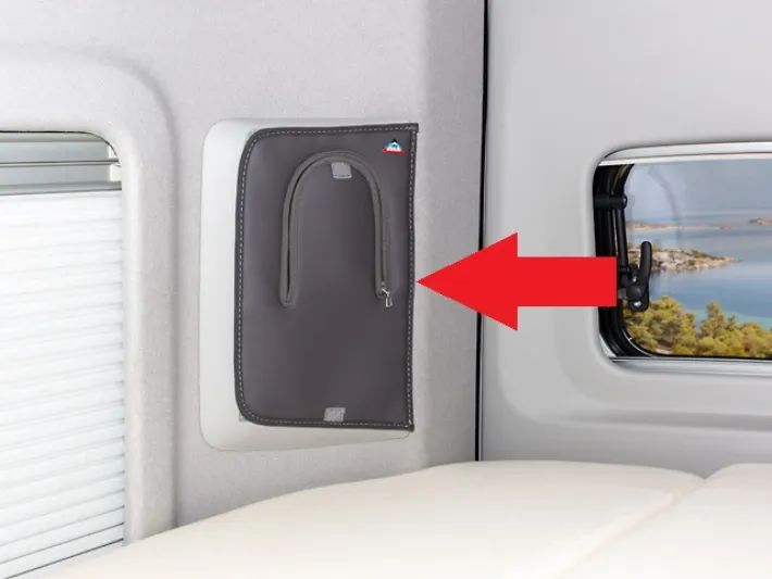 4TOP ist der praktische Abschluss für die offenen Ablagemulden in den D-Säulen. Die Befestigung erfolgt rundum mit Spezialklettverschluss.