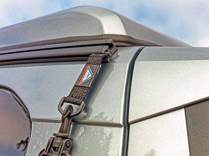 Die Halterung für die Serien-Aluschiene wird direkt in die Kederschiene der vorhandenen Aluschiene eingeführt. Die Tankhalterung wird am unteren Tragegriff des Faltwassertanks mit einer stabilen Steckschließe befestigt und anschließend mithilfe eines Karabiners sicher in die Aluschienen-Halterung eingehängt. Dadurch hängt der Wassertank stabil und komfortabel in optimaler Höhe zum Befüllen.